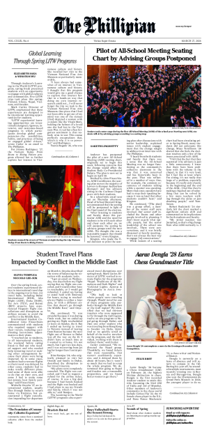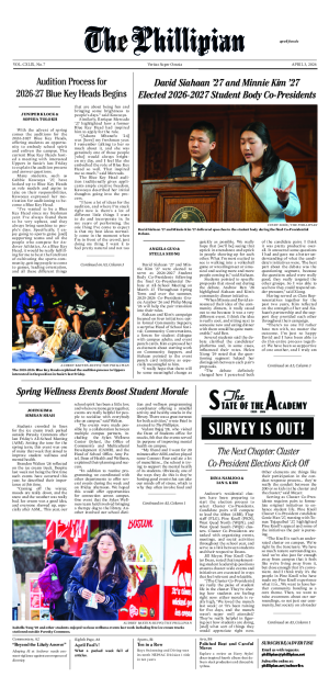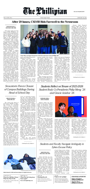 First printed in 1857, The Phillipian is Phillips Academy's weekly student newspaper. Completely uncensored and entirely student-run, the paper is distributed every Friday from September to June. Explore The Phillipian in its entirety from 1878.