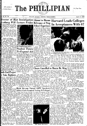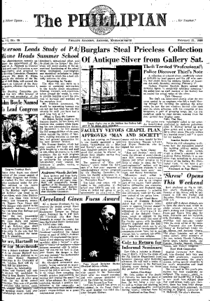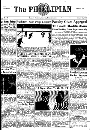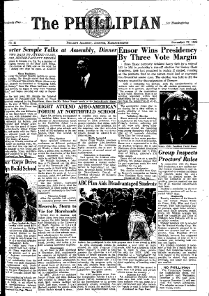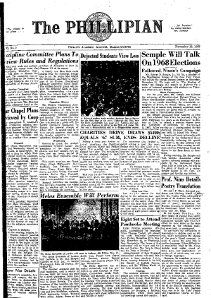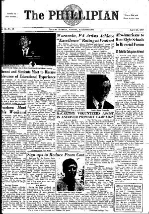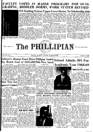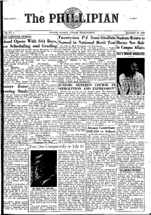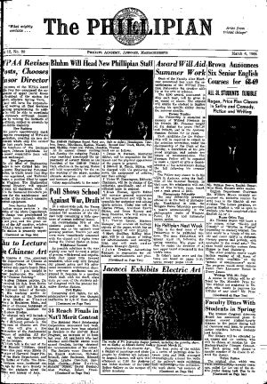 First printed in 1857, The Phillipian is Phillips Academy's weekly student newspaper. Completely uncensored and entirely student-run, the paper is distributed every Friday from September to June. Explore The Phillipian in its entirety from 1878.
