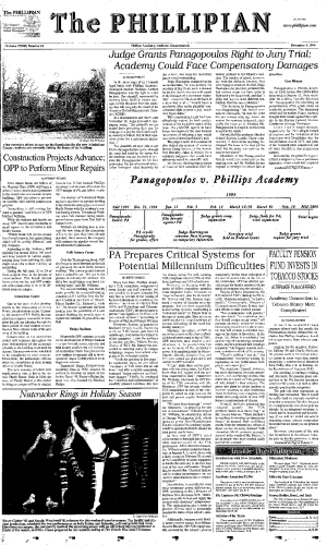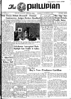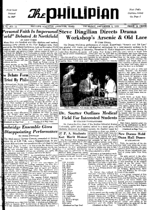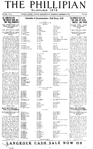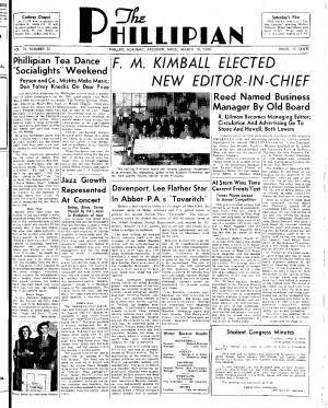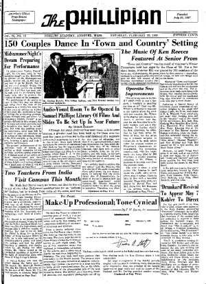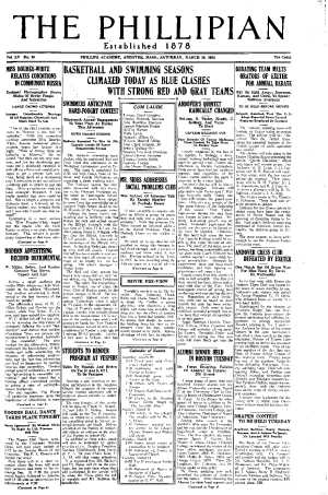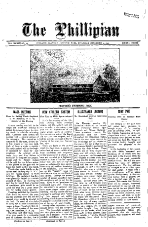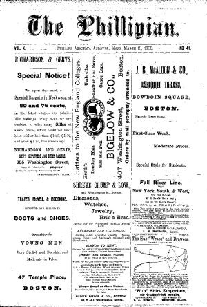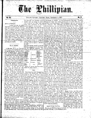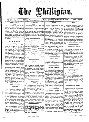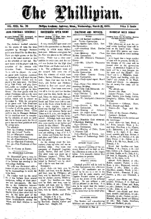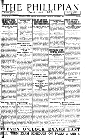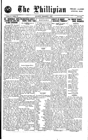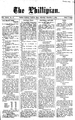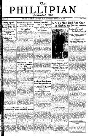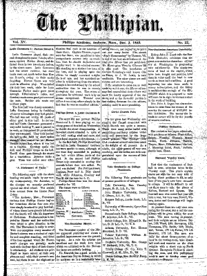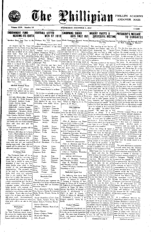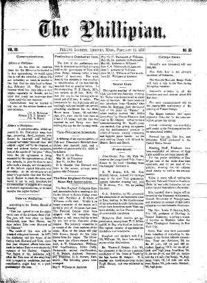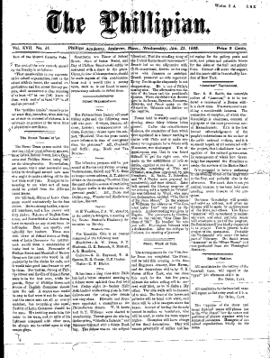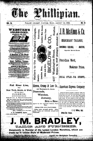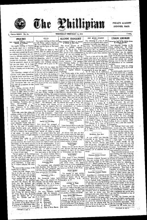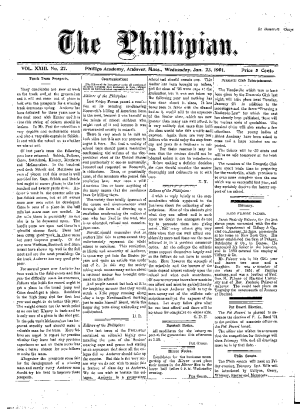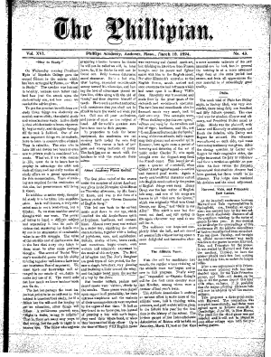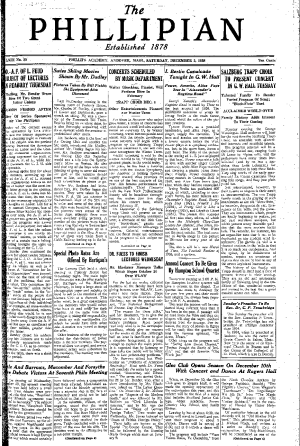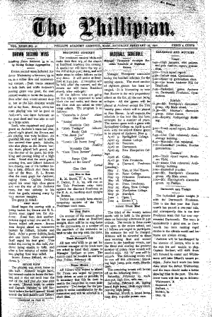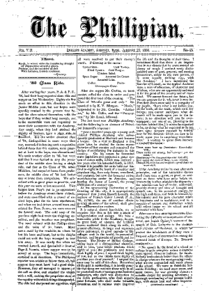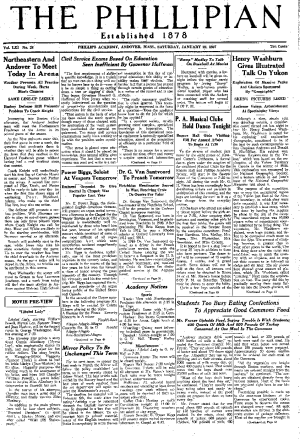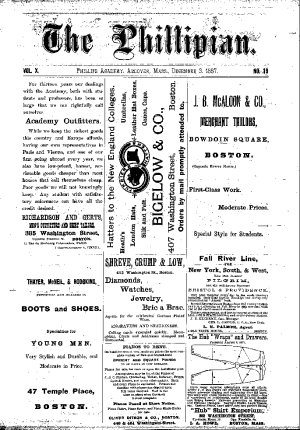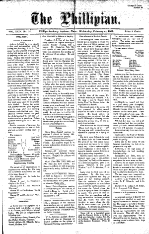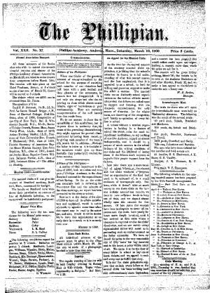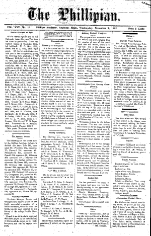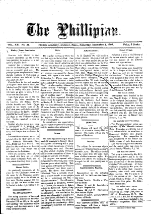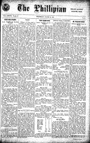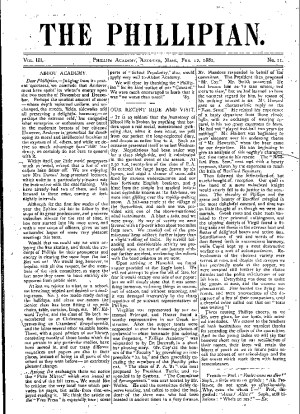 First printed in 1857, The Phillipian is Phillips Academy's weekly student newspaper. Completely uncensored and entirely student-run, the paper is distributed every Friday from September to June. Explore The Phillipian in its entirety from 1878.